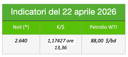 L’indice dei noli b.d.y. è salito a 2.640 punti, il petrolio wti è sceso a circa 88 $al barile, il cambio €/$ gira a 1,17427 ore 13,36.