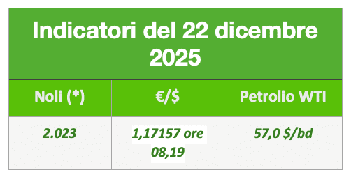 L’indice dei noli b.d.y. è sceso a 2.023 punti, il petrolio wti è salito a circa 57 al barile, il cambio €/$ gira a 1,17157 ore 08,19
