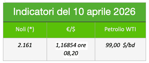 L’indice dei noli b.d.y. è salito a 2.161punti, il petrolio wti è salito a circa 99$ al barile, il cambio €/$ gira a 1,16854 ore 08,20