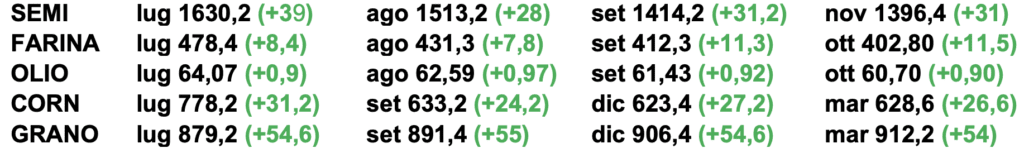 Mario Boggini – esperto di mercati cerealicoli nazionali e internazionali – (per contatti +39 338 6067872) – Valori indicativi senza impegno, soggetti a variazioni improvvise. Questa informativa non costituisce servizio di consulenza finanziaria ed espone soltanto indicazioni-informazioni per aiutare le scelte del lettore, pertanto qualsiasi conseguenza sull’operatività basata su queste informative ricadono sul lettore. Officina Commerciale Commodities srl – Milano