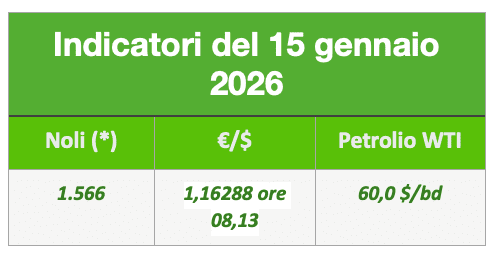 L’indice dei noli b.d.y. è sceso a 1.566 punti, il petrolio wti è salito a circa 60 al barile, il cambio €/$ gira a 1,16288 ore 08,13
