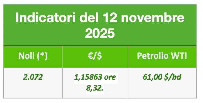L’indice dei noli b.d.y. è salito a 2.072 punti, il petrolio wti è stabile a circa 61$ al barile, il cambio €/$ gira a 1,15863 ore 8,32. L’euro non si riprende.