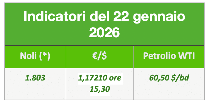 L’indice dei noli b.d.y. è salito a 1.803, punti il petrolio wti è salito a circa 60,50 al barile, il cambio €/$ gira a 1,17210 ore 15,30