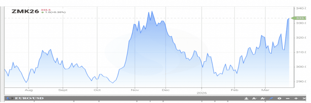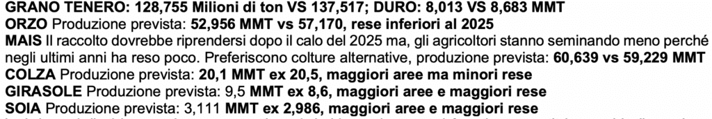 Mario Boggini – esperto di mercati cerealicoli nazionali e internazionali – (per contatti +39 338 6067872) – Valori indicativi senza impegno, soggetti a variazioni improvvise. Questa informativa non costituisce servizio di consulenza finanziaria ed espone soltanto indicazioni-informazioni per aiutare le scelte del lettore, pertanto qualsiasi conseguenza sull’operatività basata su queste informative ricadono sul lettore.