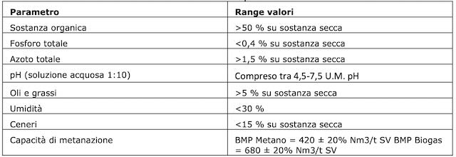 A seguire lo schema delle caratteristiche chimico-fisiche del sottoprodotto.