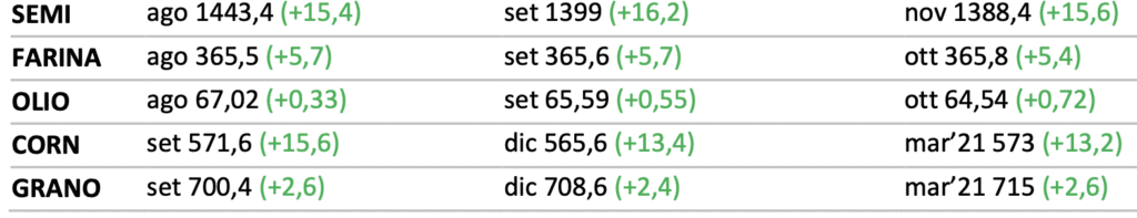 Mario Boggini – esperto di mercati cerealicoli nazionali e internazionali – (per contatti +39 338 6067872) – Valori indicativi senza impegno, soggetti a variazioni improvvise. Questa informativa non costituisce servizio di consulenza finanziaria ed espone soltanto indicazioni-informazioni per aiutare le scelte del lettore, pertanto qualsiasi conseguenza sull’operatività basata su queste informative ricadono sul lettore.