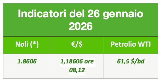 L’indice dei noli b.d.y. è sceso a 1.762, punti il petrolio wti è salito a circa 61,50 al barile, il cambio €/$ gira a 1,18606 ore 08,12.
