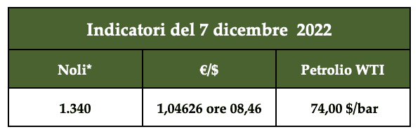 L’indice dei noli B.D.Y. è salito a 1.340 punti, il petrolio wti è sceso a circa 74 $ al barile, il cambio €/$ gira a 1,04626 ore 08,46.