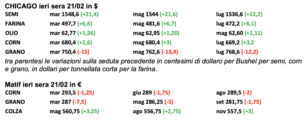Mario Boggini – esperto di mercati cerealicoli nazionali e internazionali – (per contatti +39 338 6067872) – Valori indicativi senza impegno, soggetti a variazioni improvvise. Questa informativa non costituisce servizio di consulenza finanziaria ed espone soltanto indicazioni-informazioni per aiutare le scelte del lettore, pertanto qualsiasi conseguenza sull’operatività basata su queste informative ricadono sul lettore.