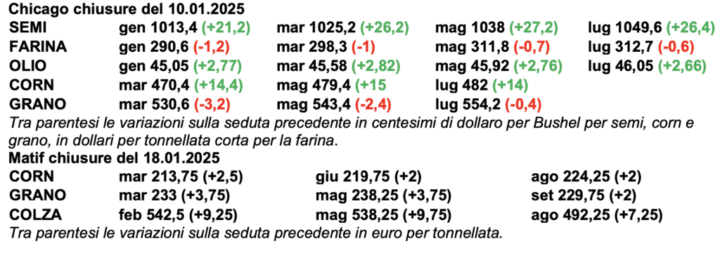 Mario Boggini – esperto di mercati cerealicoli nazionali e internazionali – (per contatti +39 338 6067872) – Valori indicativi senza impegno, soggetti a variazioni improvvise. Questa informativa non costituisce servizio di consulenza finanziaria ed espone soltanto indicazioni-informazioni per aiutare le scelte del lettore, pertanto qualsiasi conseguenza sull’operatività basata su queste informative ricadono sul lettore.