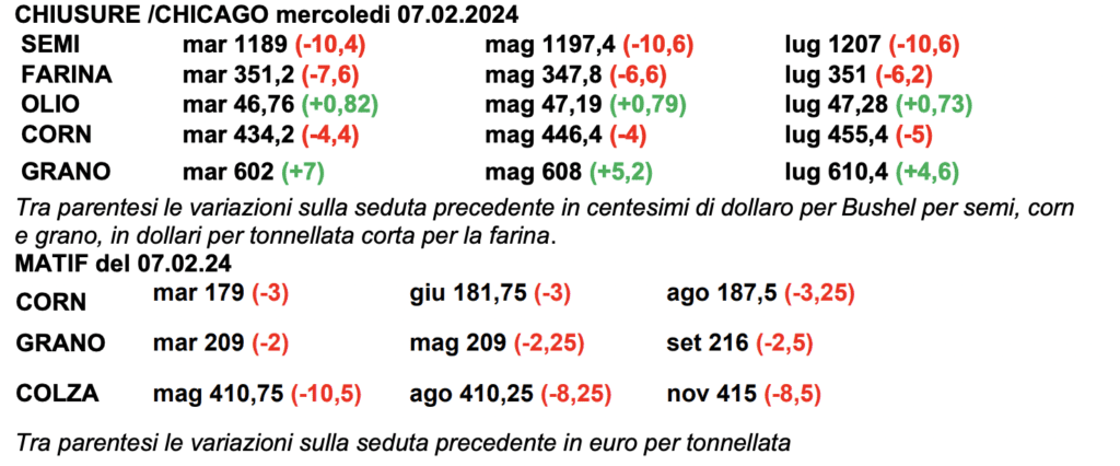Mario Boggini – esperto di mercati cerealicoli nazionali e internazionali – (per contatti +39 338 6067872) – Valori indicativi senza impegno, soggetti a variazioni improvvise. Questa informativa non costituisce servizio di consulenza finanziaria ed espone soltanto indicazioni-informazioni per aiutare le scelte del lettore, pertanto qualsiasi conseguenza sull’operatività basata su queste informative ricadono sul lettore.