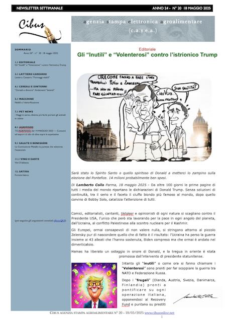 Cibus Agenzia Stampa Agroalimentare: SOMMARIO Anno 24 – n° 20 18 maggio 2025 –