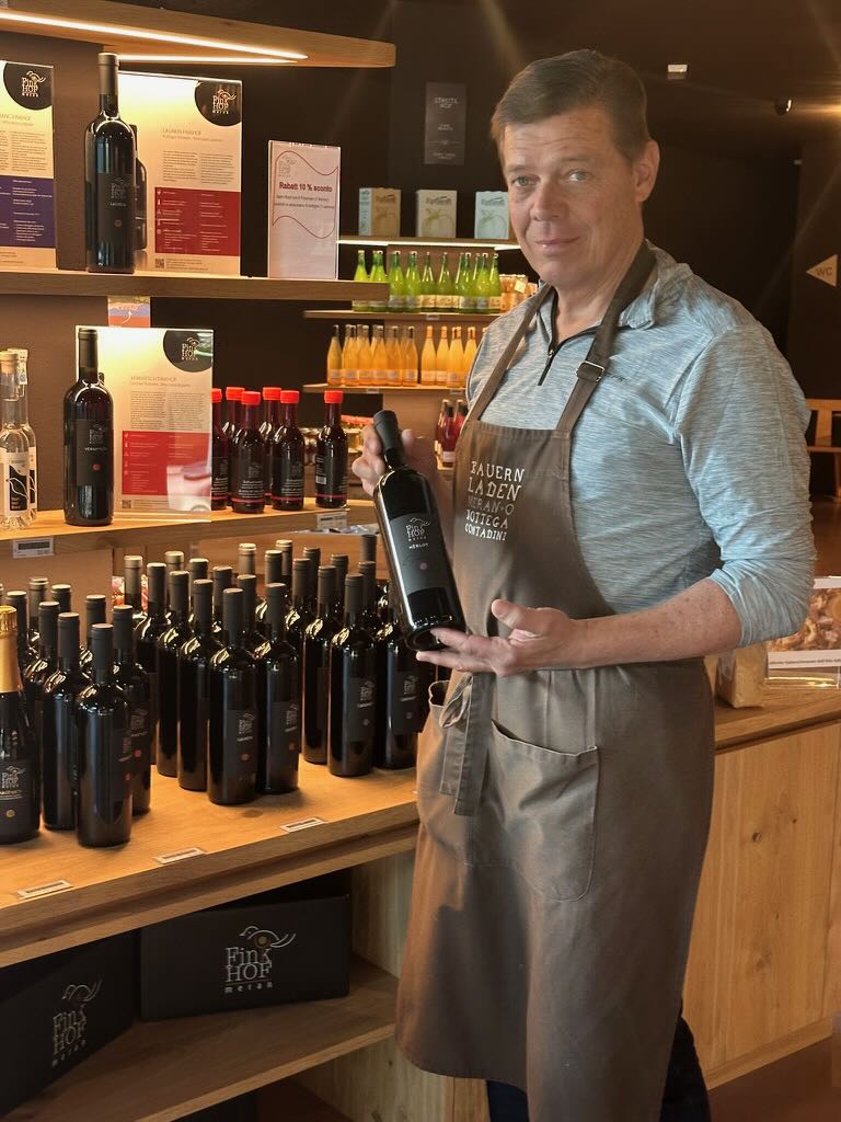 C’è un dettaglio della storia familiare che Konrad racconta con un certo orgoglio. “Il vino del Finkhof arrivava fino a Vienna.” Vienna, allora capitale dell’Impero asburgico. “Non era comune per un piccolo maso”, osserva. Il commercio del vino seguiva le rotte che attraversavano l’arco alpino. Botti e bottiglie partivano dalle valli del Tirolo e raggiungevano le città dell’impero. “Era un altro mondo”, dice Konrad. Poi sorride: “O forse non è cambiato così tanto.”