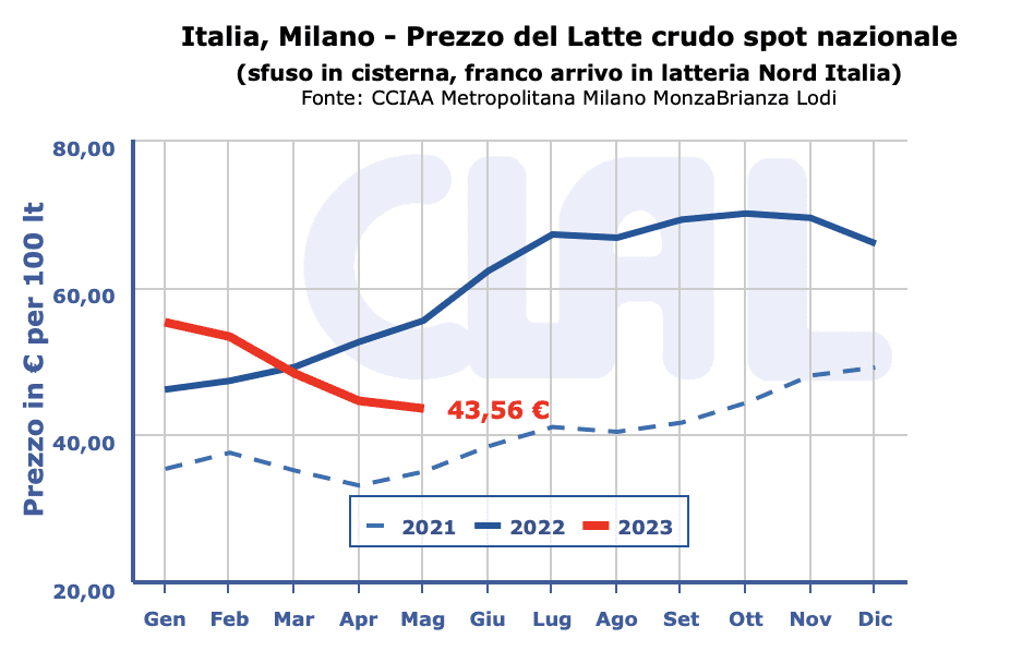 Latte crudo spot Nazionale 47,94 49,49 (+) 45,88 47,94 (+)