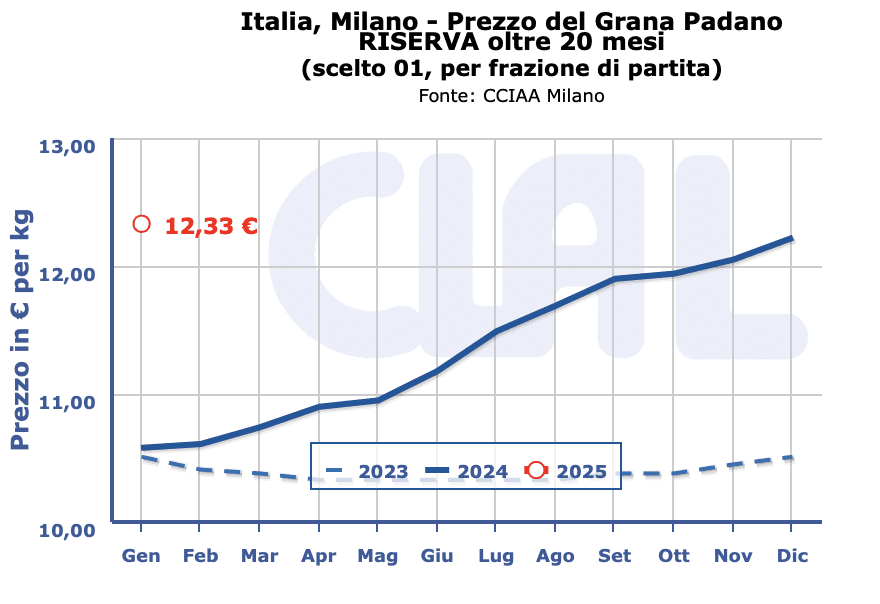 GRANA PADANO– Milano (27/1/2025) – Il Grana Padano continua a salire.