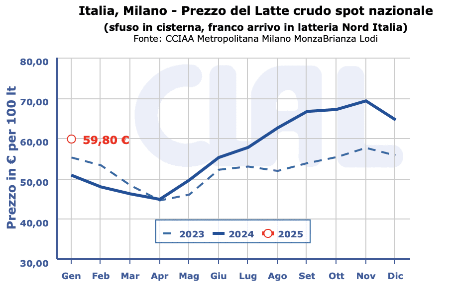 Latte crudo spot nazionale 64,44 65,47 (+) 62,89 64,44 (+)