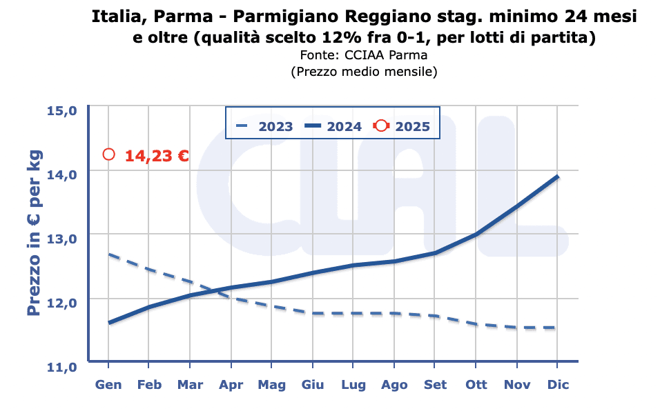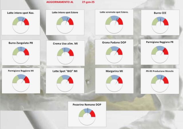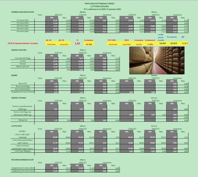 PARMIGIANO REGGIANO – Parma 27/1/2025 – A Parma i listini tornano a crescere sensibilmente. Gran rimbalzo invece nuovamente a Milano.