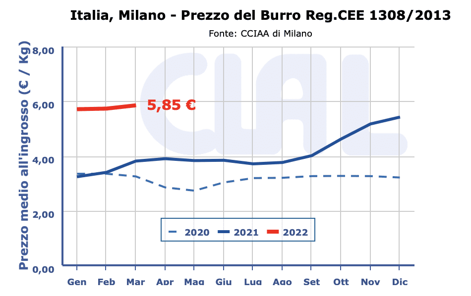 BURRO E PANNA – Alla Borsa Merci di Milano i listini del burro hanno ripreso una lieve salita di 5 cent. La crema anch’essa in crescita (+4cen). Alla borsa di Parma il listino dello zangolato ha registrato un leggero rimbalzo e stessa reazione è riscontrata alla Borsa di Reggio Emilia. Borsa Veronese stazionaria