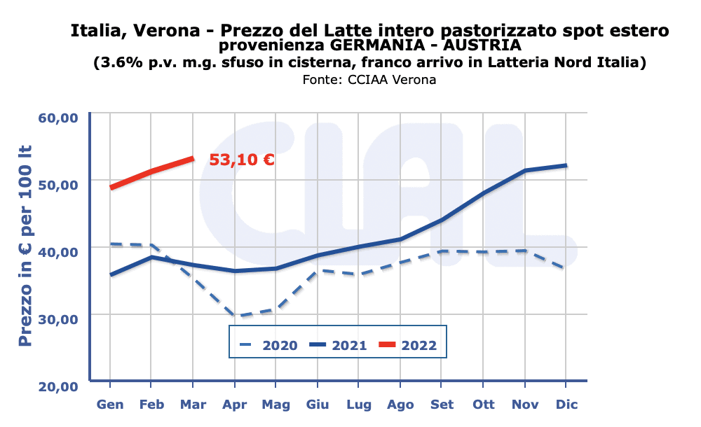 Latte Intero pastorizzato estero 52,58 53,61 (+) 46,91 47,94 (=)