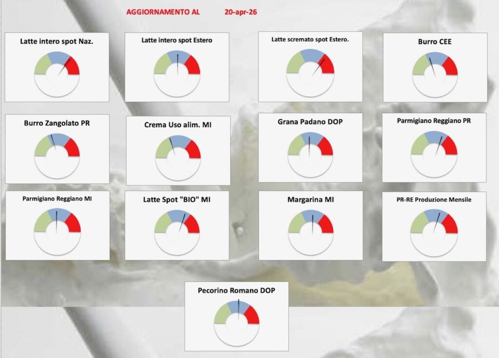 PARMIGIANO REGGIANO – Parma 20/4/2026 – A Parma i listini sono in fase di rallentamento e alla borsa milanese i prezzi si arrestano totalmente