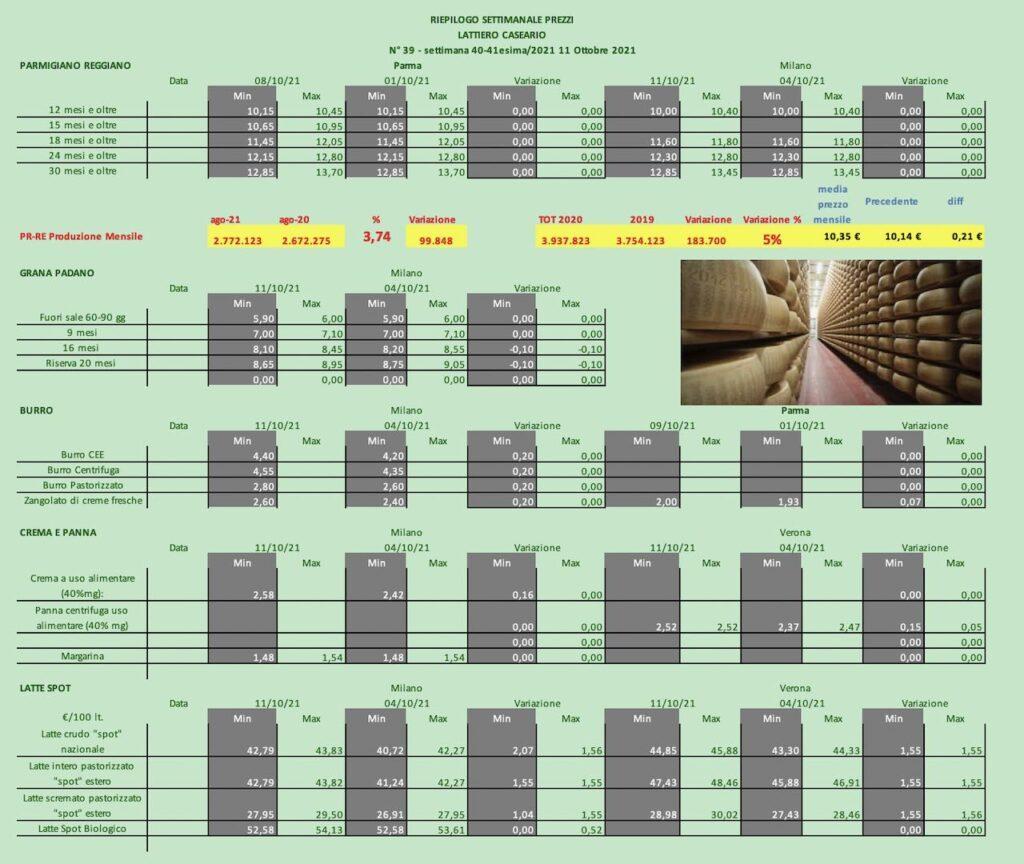 PARMIGIANO REGGIANO – Parma 8 Ottobre 2021 – A Parma i prezzi si sono stabilizzati confermando i valori precedenti. Milano altrettanto mantiene i prezzi invariati.