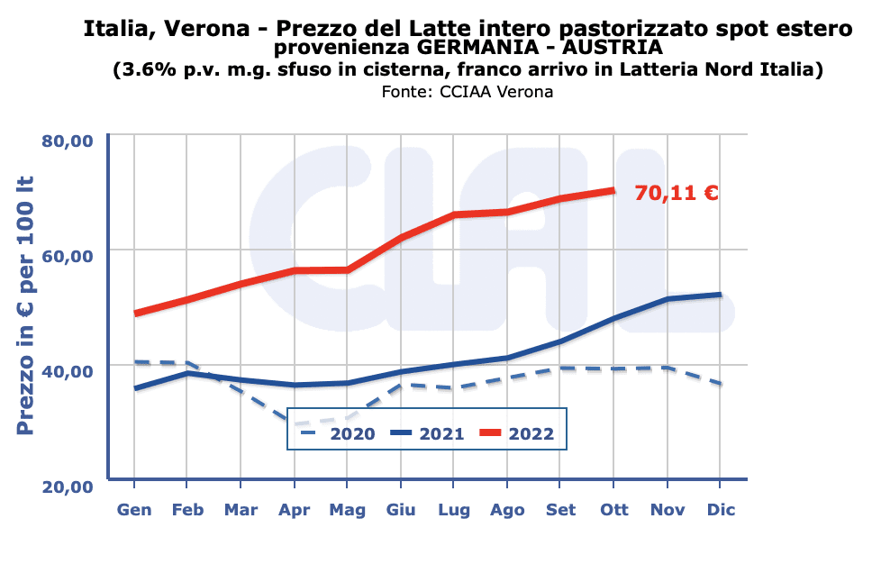 Latte crudo spot Nazionale 69,59 70,62 (-) 69,08 70,62 (-)