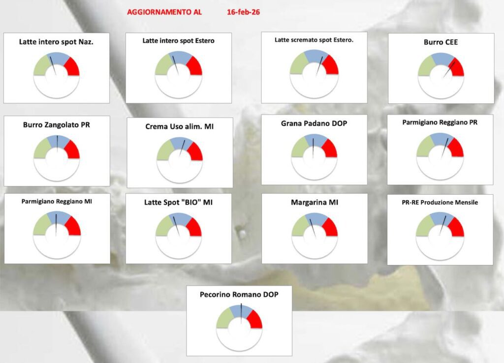GRANA PADANO– Milano (16/2/2026) – Grana Padano: Ancora Stabile. Dal nuovo anno non vi sono state variazioni di prezzo.