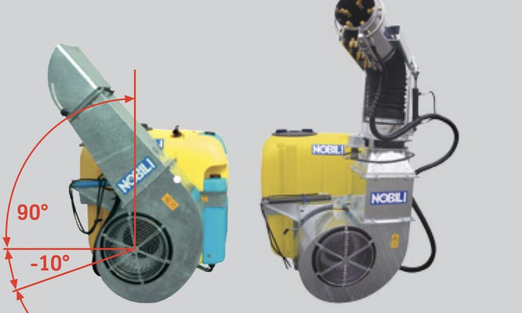 L’atomizzatore è impiegabile in un ampio range d’utilizzo: dalle piante a alto fusto alle colture erbacee ma anche in serra. La grande duttilità è integrata da una girante centrifuga con rotazione della bocca di uscita di 110°.