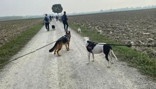 Franco Benassi, Tatiana Lasitsa oppure Ludovica Baratta si alternano alla testa e alla coda della fila di coppie e tra di loro comunicano con walkie talkie. Osservano il gruppo e l’ambiente, dialogano con cani e conduttori. Relazione, sicurezza, libertà di espressione per i quattro zampe e per i bipedi. Sempre equilibrati, i gruppi. Rispettosi delle caratteristiche caratteriali e fisiche dei cani e della storia della loro relazione con gli umani-conduttori. Nessun giudizio, quindi nessuna frustrazione.
