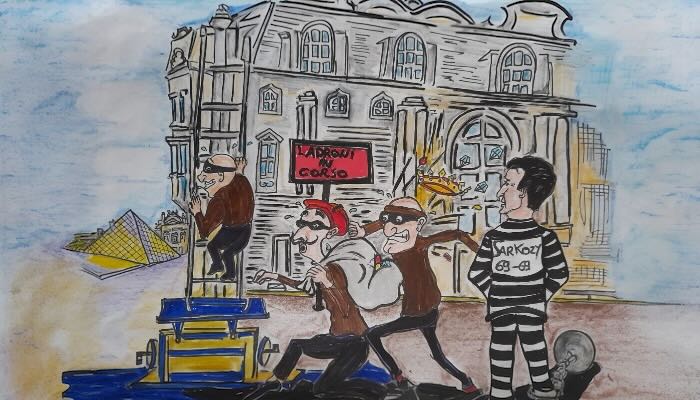 Certo che il Karma, se vuole, può essere anche meglio e più pungente di un vignettista satirico. Dal furto al Louvre, alla esercitazione da Sturmtruppen dei tedeschi che si sparano addosso tra esercito e polizia in Baviera, passando per Sarkozy che è stato accolto nella nuova dimora parigina in outfit “gessato” a righe larghe.
