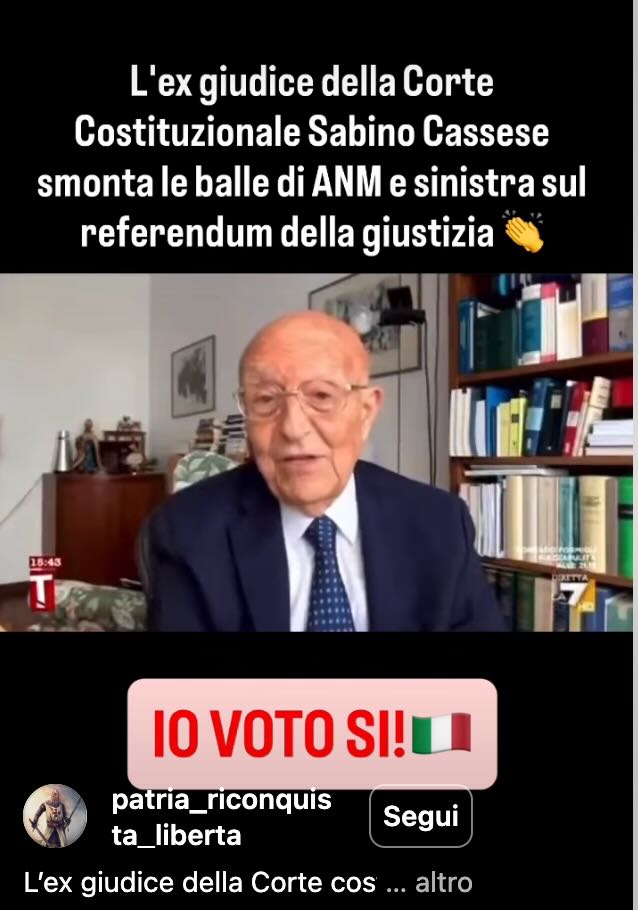 Anche l’ex Giudice della Corte Costituzionale Sabino Cassese smonta le balle di ANM e sinistra sul referendum della giustizia.